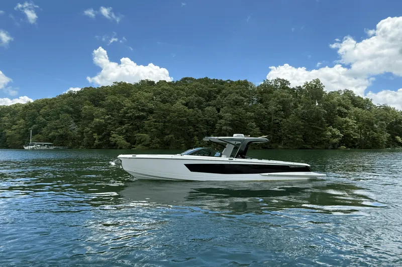 With a spacious layout designed to accommodate friends and family, the AV36 features an aft stadium seating configuration that creates an ideal space for entertaining-whether you're rafting up, anchored in a cove, or lounging at the sandbar. The boat is currently kept on beautiful lake Lanier in her covered slip.