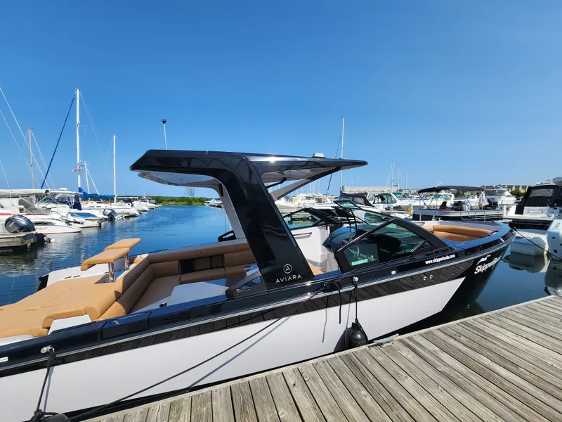 Additional highlights include an electric hydraulic steering system, automatic and manual fire extinguishers, multiple LED lighting zones, and ample storage throughout. Whether cruising, relaxing, or entertaining, the AV32 offers the perfect combination of performance, luxury, and style. Brand-new and ready for your next adventure, this Aviara is meticulously equipped for comfort, convenience, and lasting enjoyment on the water.