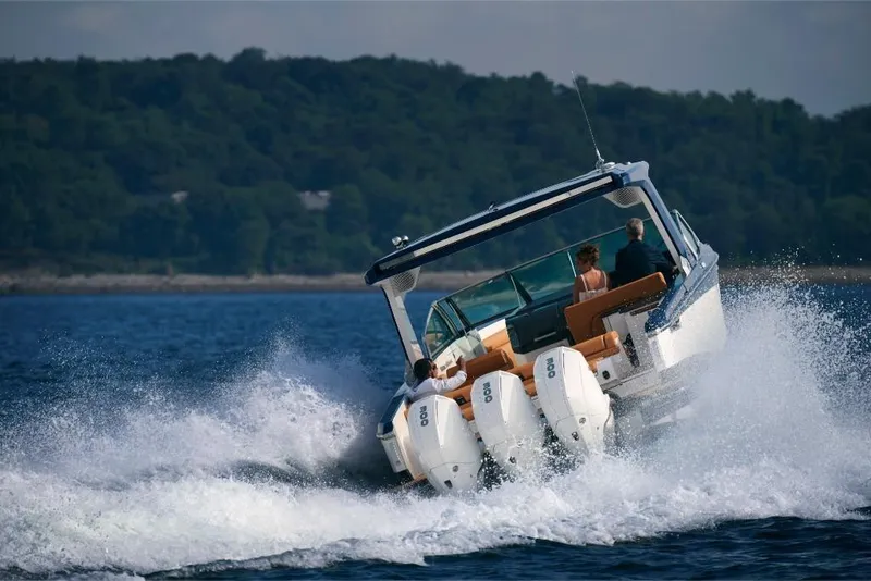 Hosting power takes horsepower and the AV36 has plenty to go around, featuring Aviara's signature modern layout expanded to create more space for incredible shared experiences. Below deck, the refined cabin creates a comfortable private retreat. Confidence comes with the boat's smooth, stable ride-delivered by your choice of sterndrive, twin or triple-engine outboard configurations. Excellence extends to every detail on the AV36, from premium components and unrivaled ergonomics to a unique helm design fine tuned for effortless control.