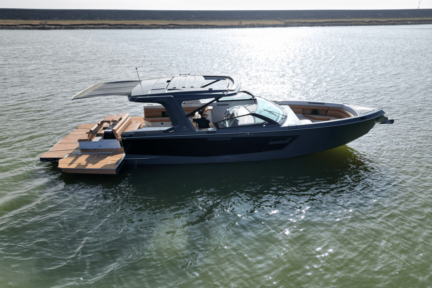 Elegant Design: The AV40 features a modern and stylish exterior with clean lines and attention to detail, making it stand out on the water.