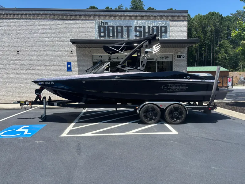 The "14 Axis A22" refers to the 2014 model year of the Axis A22 wakeboard boat. This boat is known for its wakeboarding and wakesurfing capabilities, as well as its versatility for other watersports. Key features include a "pickle-fork" bow for increased space, a modified-V fiberglass hull, and options for ballast and surf systems to customize the wake.