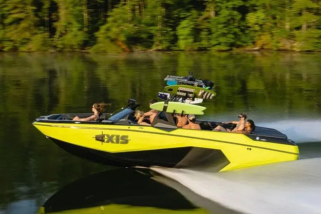 Completely new from bow to stern, the Axis A245 is without question the crown jewel of the Axis line-up. Highlighted by a state-of-the-art hull profile for enhanced on-water performance and an aggressive look, this 18-seat pickle-fork wakeboat comes with easy-to-access, deep storage, and plenty of seating for all your friends and family. Built with standard features including a walkthrough lounge design, a seven-inch Garmin touchscreen, and the AW20 tower, the A245 has everything your crew needs for non-stop thrills. And, as the most aggressive Axis yet, the A245 punches well above its class delivering a world-class experience behind the boat without breaking the bank. The A245 generates clean, ocean-like waves with plenty of push and a wakeboard wake that pros dream of - and they are fully customizable so that riders of every skill level, age, and ability can have fun. We've truly thought of everything to deliver an on-the-water experience you've never experienced before.
