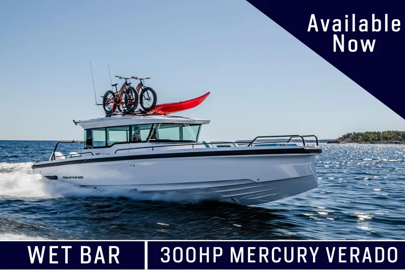 New Axopar 37 XC on order and available for purchase. Arriving in time for 2024 boating season. Notable selected options include Webasto heater, bow thruster, aft cabin, echo-sounder, and more!
