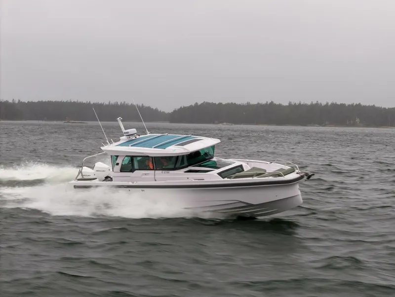 This Axopar 38 XC Cross Cabin is shown as a well-equipped build, highlighting one of the many ways the platform can be configured. Designed around versatility and all-weather usability, the 38 XC combines the protection of a fully enclosed pilothouse with the performance and modular deck layout Axopar is known for.
