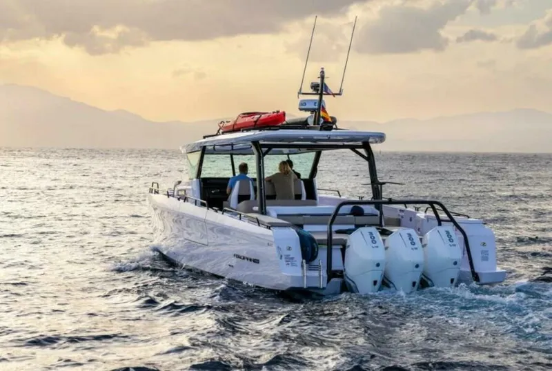 Modern Design: The Axopar 45 Cross Top boasts a sleek, contemporary design with clean lines and a sporty profile, appealing to those who appreciate stylish aesthetics on the water. 2. Spacious Layout: The boat features a versatile and spacious deck layout, including a comfortable cabin area, ample seating, and a well-designed helm station, perfect for both day cruising and longer trips. 3. Performance: Equipped with powerful outboard engines, the 2025 model delivers impressive speed and handling, ensuring a smooth and responsive ride even in choppy conditions. 4. Cross Top Configuration: The Cross Top offers additional weather protection with a sturdy hardtop and side panels, enhancing comfort and usability in varying weather conditions. 5. Quality Build: Known for solid construction and high-quality materials, the Axopar 45 Cross Top provides durability and reliability on the water. 6. Customization Options: Owners can choose from various customization options and packages to tailor the boat to their specific needs and preferences.