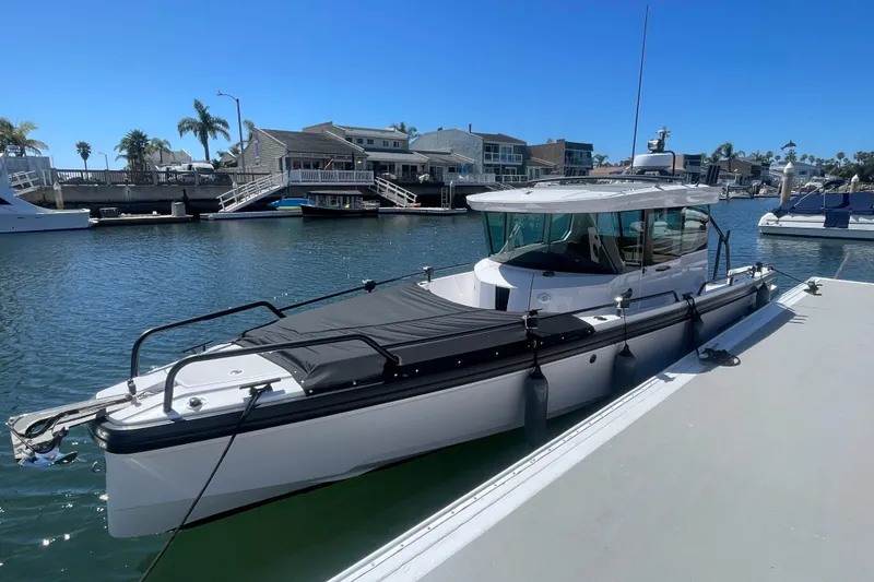 The 2022 Axopar Brabus 28 Cabin is designed for boating enthusiasts who seek a perfect blend of sporty performance, luxury, and versatility. Ideal for those who enjoy high-speed adventures on the water without compromising on comfort and style, this boat caters to individuals and families looking for a sleek, durable vessel suitable for day trips, fishing, and watersports. Its cabin design also makes it appealing to those who want protection from the elements while still experiencing the thrill of open-water cruising.