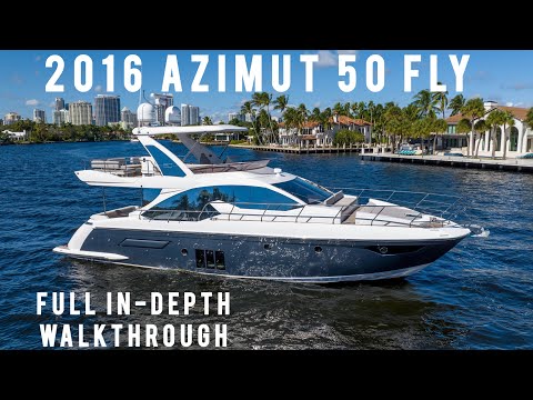 Customers praise the 2016 Azimut 50 Fly for its sleek design and spacious flybridge, which offers excellent outdoor living and entertaining space