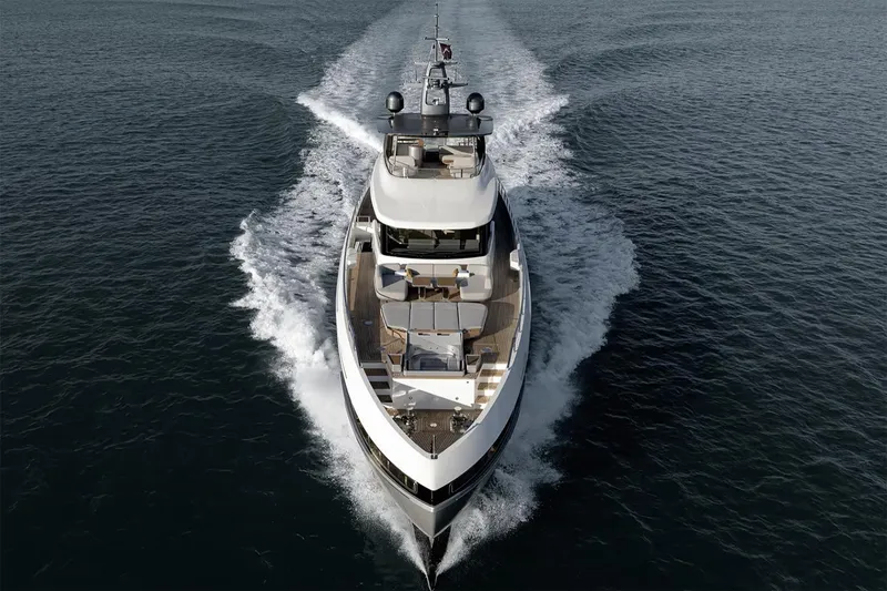 With her original design and modern ethos, the Grande 36M is a superyacht that synthesizes cutting-edge style and attitude. From the unprecedented semi-walkaround upper deck inspiring freedom of movement to the fully retractable side windows posing a special gateway to the sea, all elements contribute to visually blend interior and exterior spaces. A barrierless lifestyle naturally blurs the boundaries between onboard pleasure and oceanic greatness.