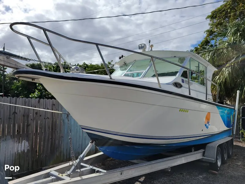 10/2025 complete 300 hour service, consisting of oil changes, gear lubes, filters, spark plugs, impellers, thermostats, anodes, removed both power heads and changed the seals The boat was clean inside and out. The exterior gel coat has some scratches and gouges from docks. The graphics have some peeling and could be removed. The bottom paint should be touched up if you intend on leaving the boat in the water. The exterior cushions could use a deep cleaning. The engines show heavy cosmetic wear and tear. The cockpit was clean. The bilge was clean but showed heavy rust stains. Some of the wiring below deck was replaced and looks to be in good order. The gauges are cloudy from the sun but are still readable. The switches and controls show normal wear and tear. The cabin is useable but could use a good cleaning. There are stains in the headliner that may not come out. The trailer looks solid. The seller had the springs and equalizers recently replaced. The axles look to be in good condition. Some of tires have low treads.