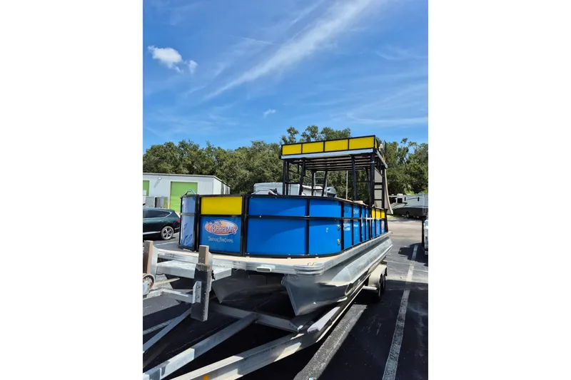 Lifting strakes, water slide, large stern deck, welded aluminum rub rail, under deck aluminum skin, Simrad GO 7 GPS/Chartplotter. Twin Power Pole anchoring system, cocktail table, 4 corner loungers, forward Bimini top etc. 15 person or 3000 LB USCG capacity,
