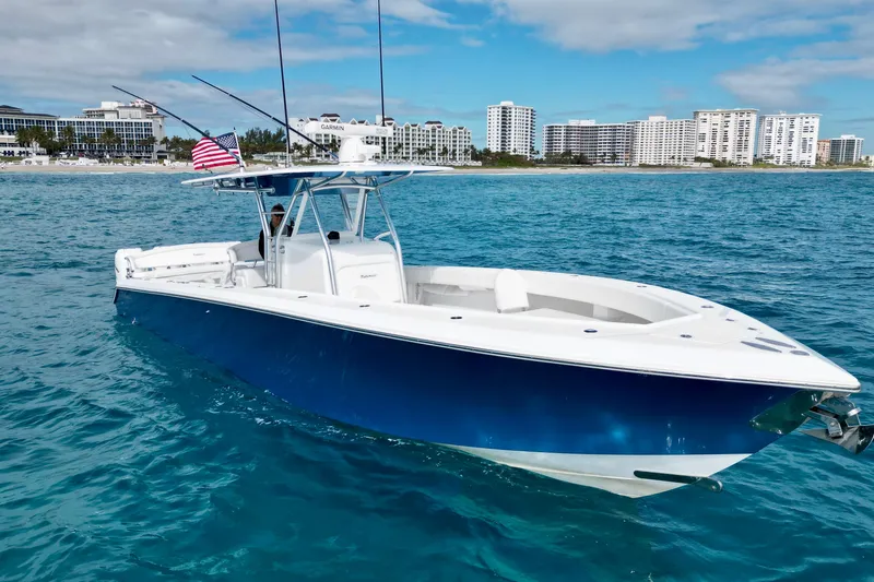 This indoor-kept boat is in excellent condition. It has the custom "Bentley Blue" metallic hull sides and hard top underside. Hard Top aluminum is perfect and the boat package is "turn-key" for immediate action. Captain maintained and routinely detailed.