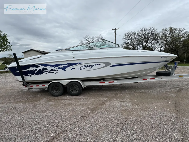 2002 Baja 292 Islander 496 HO Bravo III Drive 333 Fresh Water Hours Drive Shower, Capt Call, Updated Stereo, Zero Effort Controls, Driver Drop Out Bolster, Duel Batteries, Bow and Cockpit Cover, Outlaw Graphics, Docking Lights, Trim Tabs, 2005 Aluminum Trailer & More Very Clean boat! LOW HOURS, Call today to schedule your private showing.