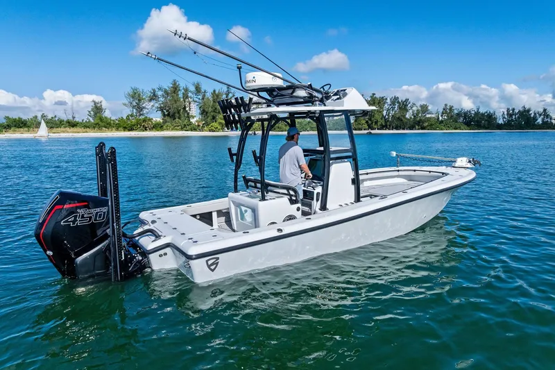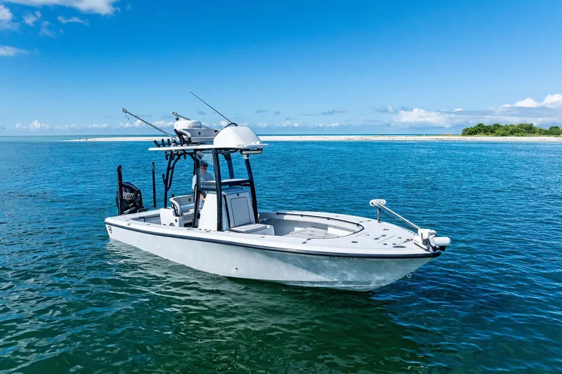 Elevate your boating experience with this pristine 2020 Barker Boatworks 26 Open, designed for versatility and performance. Whether you're chasing inshore catches, tackling offshore fishing, or unwinding at the sandbar, this boat delivers it all with style and power. Equipped with a robust Mercury Racing 450 engine (only 214 hours), it's primed for your next adventure.