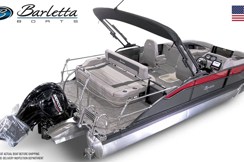 2026 Barletta Aria A22UC w/Mercury 150L FourStroke. Color: Gray Moonstone/Red w/Tempest Gray interior.