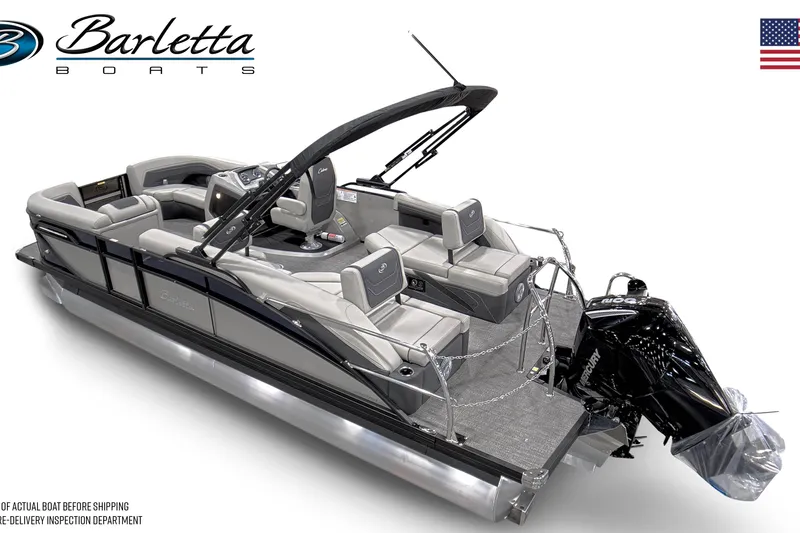 New 2026 Barletta C22M powered by Mercury 200L DTS. Includes Triple Toon Package with Storage, Blackout Package, Dual Onboard Battery Charger, Stainless Flag Pole with US Flag, Simrad 7 G07 SXR Chart, 2026 Bear Trailer and more.