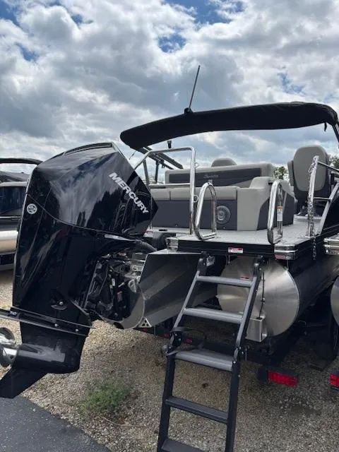 New 2025 Barletta C24UC powered by Mercury 250L. Includes Blackout Package, Marquesan Gray furniture, Triple Toon Package with midship storage, Simrad G07 XSR Chartplotter, flag pole and US flag, Bear trailer and more.