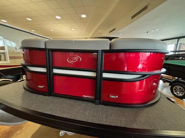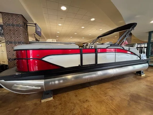 NEW FLOORPLAN ALERT !!!! This 2025 Aria 22M is Macau Red with the White Opal Accent and is Powered by a 200hp Mercury 4 Stroke, with Triple Toon Package, Vessel Link and Power Assist Steering, Power Bimini Top, Simrad 7, Interior RGB Lighting Package, Exterior Lighting Package, Bow Filler Seat, Adjustable Pedestal on Captain Chair, Ski Tow Bar and a Cover.