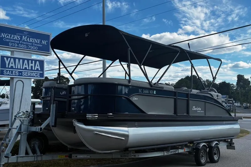 This 2024 Barletta Cabrio 24 CC Coastal Edition is powered by a Mercury 250 with 138.5 HOURS. It's loaded with options including a 7-inch Simrad GPS, double bimini top, power assist steering, and more! This boat comes standard with lots of seating for the family and it's set up for fishing as well with a livewell, rod holders, and rear fishing chairs.