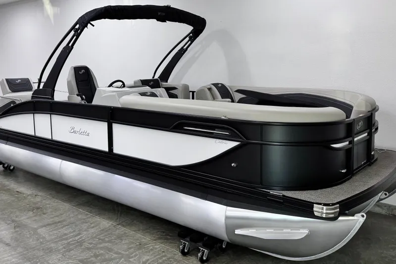 2026 Barletta Cabrio C24M w/Mercury 250L FourStroke. Color: Matte Black/Winter White w/Blackout Package. Marquesan Gray Interior.