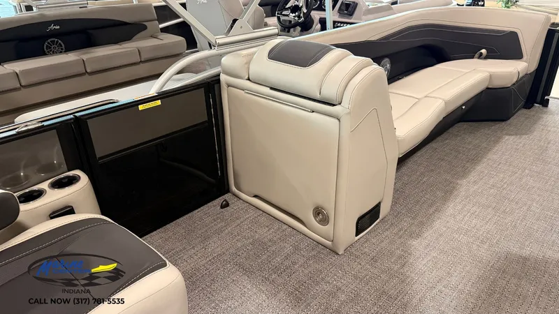 STYLINGRailskin Color: Black DiamondRailskin Packages: Blackout Package CabrioFurniture: Carmella Tan with OnyxFlooring: Amore TanPACKAGESTriple Toon Package w/ Midship Storage - CabrioENGINEMercury: Mercury (M) 250L FourStrokeGrow Boat: Grow Boating OB 200+Pre-Rig: Mercury - Mechanical w/Power Assist (200HP)Rigging: Rig Engine w/ Stainless Steel PropOPTIONSExterior: Stainless Steel Flag Pole w/American FlagExterior: Stainless Steel Safety Stanchions w/ ChainsInterior: Table, Pedestal, and Base with Yeti-ReadyCupholders (Dealer Install for Customer Preference)Lighting: Interior RGB Lighting Package CabrioEntertainment: Add Subwoofer and Amplifier