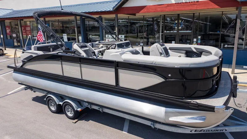 Got a crew that loves making a splash? The Barletta Cabrio C24UE is your ultimate host on the water. This pontoon is designed for those who see the lake as their personal party cove. Imagine gliding across the water with up to 12 friends, surrounded by the sleek style of Black Diamond railskin with Champagne accents and the chic Marquesan Gray furniture. The Amore Gray flooring adds that extra touch of sophistication for your stylish soirees.