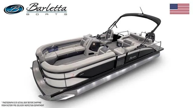 2025 Barletta Boats Cabrio C24UE, New 2025 Model! Ultra Entertainer Layout with Bar Seating and Ultra Lounger! Tri-Toon w/250 HP! Includes Mercury 250 HP Engine, Accent Color Upgrade, Power Steering Upgrade, Tri-Toon Package w/In-Floor Storage, Gray Interior, Stainless Steel Prop, Stainless Flagpole w/US Flag, Blackout Package, Interior Light Package. Main photo shown has correct exterior and interior colors but does not show the UE interior configuration with table. "Water Ready" Pricing includes Factory Freight, Dealer Prep, Boat Cover, Local Delivery. Trailer is not included in pricing but is available. Excludes Tax, Title, License, Fees.