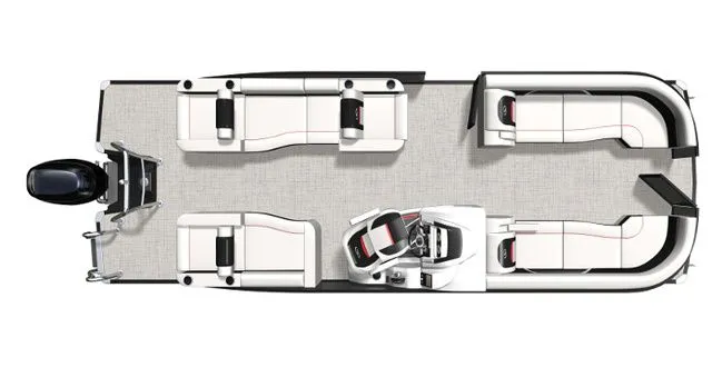 Sleek, Sporty Design: The Corsa 23M 3T features a stylish, modern profile that combines the spaciousness of a pontoon with the sleek lines of a sport boat.