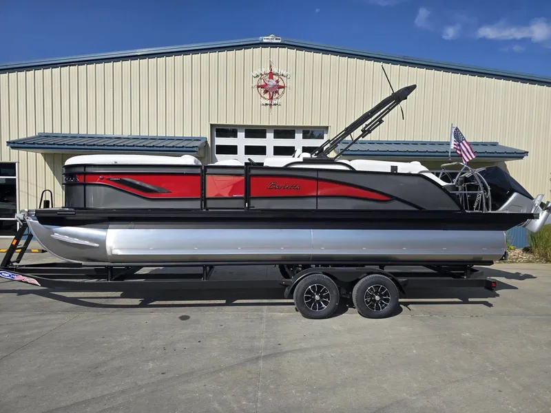 2026 Barletta Corsa 23u , 2026 Barletta Corsa 23U The 2026 Barletta Corsa 23U blends sport-inspired styling, premium performance, and family-friendly versatility in one sleek package. Measuring 25' long with an 8'6" beam, this model offers the space and comfort to host up to 13 passengers while delivering responsive handling and smooth performance. Powered by a Mercury 300L Verado V8 with DTS digital controls, hydraulic steering, and stainless prop, the Corsa 23U is engineered for confident cruising and watersports alike. The Triple-Toon Package with lifting strakes, wave tamers, and extended swim deck enhances stability and agility on the water. This build stands out with Gray Moonstone railskin accented by Macau Red, paired with the Corsa Blackout Package for a bold, modern look. Inside, Brilliant White Soft Touch upholstery with red accents creates a clean and sporty feel, complemented by Amore Gray flooring. Premium features include the Ultra-Lounge stern seating, underseat storage vents, stow-away table, and pet-friendly touches like integrated food/water dishes. Entertainment is powered by a JBL Marine stereo with six speakers and zone control, subwoofer and amplifier upgrade, and a watersports tow cage for endless fun. At the helm, a 7" Simrad NSX chartplotter with raised platform, wireless phone charging, lockable glove box, and a high-back reclining captain's chair ensures comfort and control. Exterior highlights include stainless steel safety stanchions with chains, LED docking lights, underdeck/underwater lighting, and a stair-step pet-friendly boarding ladder. The 2026 Barletta Corsa 23U is built for those who want performance, style, and everyday usability - the perfect balance of sport and sophistication on the water.Triple-Toon Package with lifting strakes & wave tamersMercury 300L Verado V8 with DTS digital controlsBlackout Package with Gray Moonstone & Macau Red stylingBrilliant White Soft Touch interior with red accentsUltra-Lounge stern seating & stow-away tablePremium JBL stereo - 6 speakers + subwoofer & amp upgradeSimrad 7" NSX chartplotter with raised helm platformPower bimini top, extended swim deck & stainless stanchionsPet-friendly touches: food/water dishes & stair-step boarding ladderSeats up to 13 passengers with sport-inspired performance and Barletta luxury.