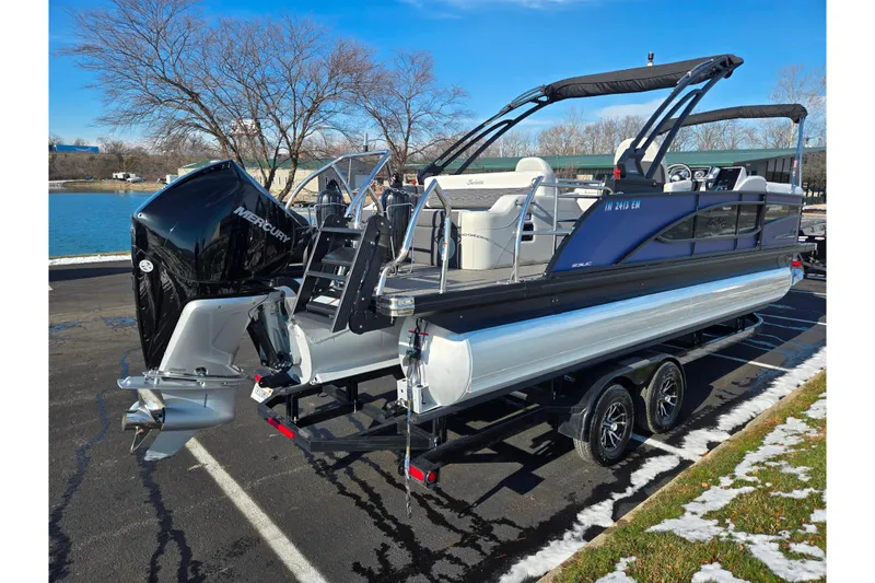 2023 Barletta Corsa 23 UCA comes with: 300 h.p. Mercury V6 with 70 Hours, Tower, Bimini Top, Cocktail Table, Stereo/BT, Custom Trailer, and more.