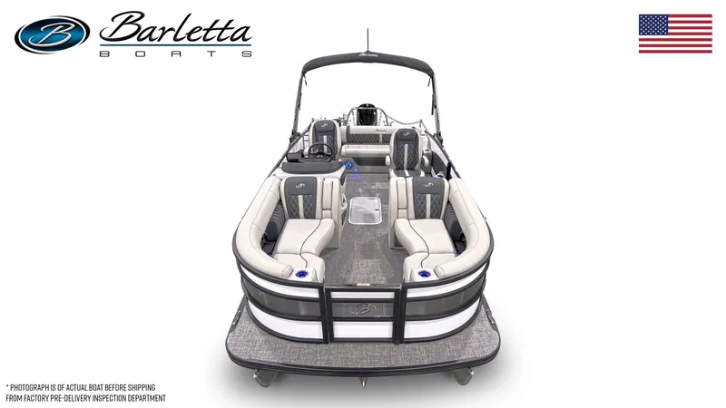 2026 Barletta L23uc , The 2026 Barletta Lusso L23UC is a premium tritoon designed for those who want top-tier comfort, performance, and attention to detail. Powered by a Mercury 300L Verado V8, this Lusso delivers smooth, confident power while maintaining the refined ride Barletta is known for. Finished in Winter White with Gray Moonstone accents and the Lusso Blackout Package, this boat has a clean, modern look to match its luxury feel. With Barletta's triple-toon performance package and high-end standard features, this boat is equally at home cruising, entertaining, or pulling water sports.Included Options & Upgrades:Mercury 300L Verado V8Mercury Digital DTS Pre-Rig with Vessel Link, hydraulic & power assist steeringStainless steel propLusso Blackout PackageOn-board battery charger (2 batteries)Metal Jacket protectantStainless steel safety stanchions with chainsWhite underdeck & underwater lightingNotable Standard Features:Triple-toon performance package with dual-stage lifting strakes & full underbelly skinDual Simrad NSX displays (12" ultrawide + 7" side display)JBL premium audio system with subwoofer & amplifierRGB interior lighting packageUltra-Lounge multi-position rear seating with USB chargingExtended swim deck with pet-friendly boarding ladderStainless steel pop-up cleats & accessory mountsIntegrated wireless phone charging at helmYeti-ready cupholders throughoutWatersports tow cage