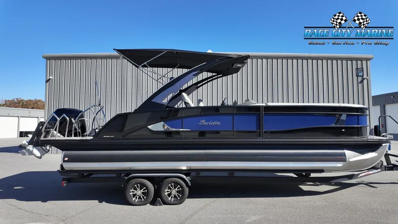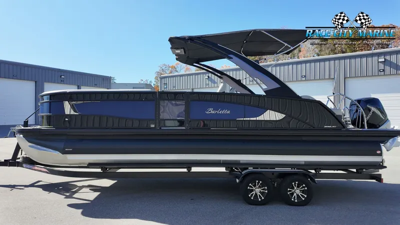 2026 Barletta Boats L25UCA, 2026 Barletta Lusso 25UCA Railskin Sweep Color (Secondary) - Black Diamond Railskin Accent Color - Bohemian Blue Blackout Package Lusso Furniture Color - Marquesan Gray w/Onyx Flooring - Amore Gray (Matrix Phantom Gray) Engine - Mercury (D) 300L Verado V8 Grow Boating OB 200+ Mercury Digital Pre-Rig for Verado w/ Engine Intergration Rig Engine w/ Stainless Steel Prop On Board Charger - 2 "Metal Jacket" Tube Protectant Adjustable Pedestal on Captain's Chair (Capt & Co-Captain's Chair) Exterior Lighting - White Underdeck and Underwater