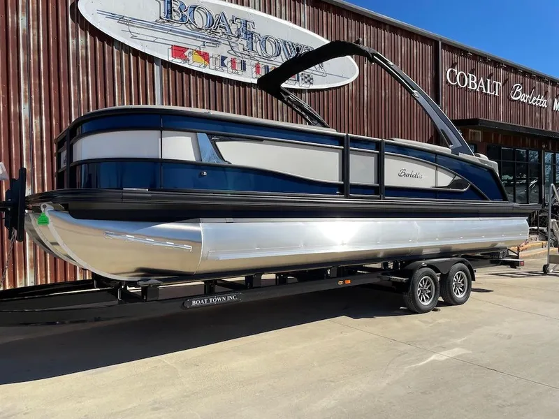 Come check out this all NEW 2025 Barletta Lusso 25QSS located here at Boat Town in Central Texas. Come check out this boat at one of our three locations Lake LBJ, Austin, or San Antonio/New Braunfels area. We serve all of the surrounding lakes, Lake LBJ, Lake Marble Falls, Lake Buchanan, Inks Lake, Lake Travis, Lake Austin, Lake Dunlap, Lake McQueeney, Lake Placid, Canyon Lake, and so much more! This Barletta Tritoon offers a quad-lounge which is the layout for those who want to spread out and relax on the ultra-comfy Barletta chaise lounges. The way the furniture wraps around the perimeter of the boat is also great for keeping curious kiddos and pets inside the boat while underway. All Lusso Q-Models are now standard with the Sport Stern. Which means you get more of the stunningly beautiful quilting, additional cupholders, and exterior facing premium speakers. Come check this pontoon boat out at Boat Town, we can't wait to get you on the water and make the best memories!