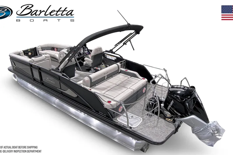 Top-tier performance meets uncompromising luxury in this 2026 Barletta Lusso L25UC. Powered by the Mercury 350L V10 Verado, this is a serious pontoon built for those who want speed, refinement, and standout presence on the water. Finished in Black Diamond with Moonstone accents and blackout styling, this boat delivers a bold, high-end look to match its performance.