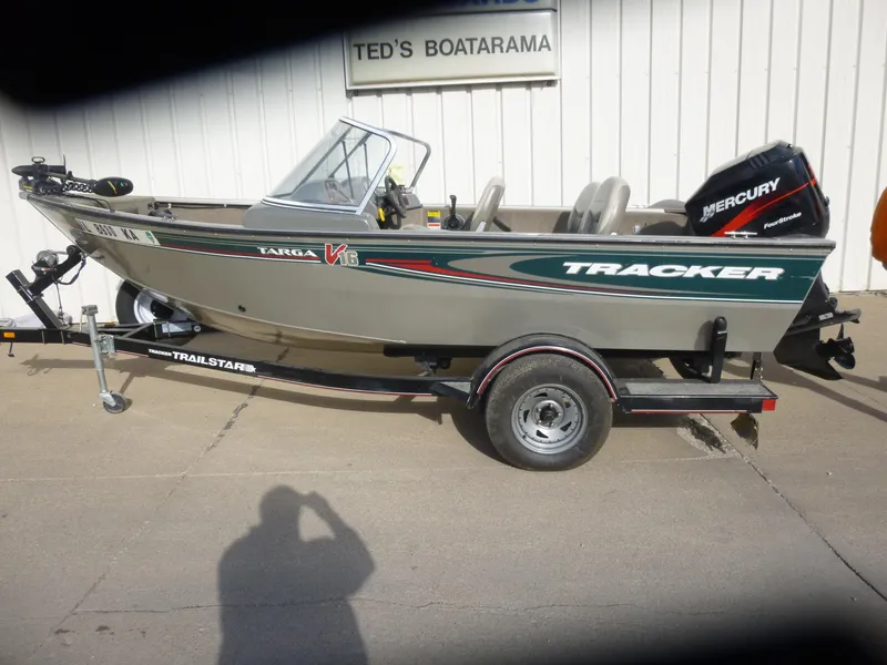 2004 TRACKER TARGA 16 WALK THRU DEEP V - 2004 MERCURY 75HP 4 STROKE WITH TRIM & TILT - 2004 TRAILSTAR CUSTOM TRAILER - MINNKOTA POWERDRIVE 40# THRUST TROLLING MOTOR - 2 FISHFINDERS - LOWRANCE X37 AT CONSOLE - HUMMINBIRD WIDE PORTRAIT UP FRONT BY TROLLING MOTOR - LARGE AERATED LIVEWELL WITH MINNOW BUCKET OPTION - LOCKABLE ROD STORAGE - LOTS OF OTHER STORAGE TOO - BOAT COVER INCLUDED - SPARE TIRE ON TRAILER - INTERIOR VERY GOOD CONDITION - OUTSIDE TOO - BOAT IS 92" WIDE (REAL WIDE AND STABLE) - HAS 24 GALLON FUEL TANK --- VERY NICE CLEAN RIG -- $12995