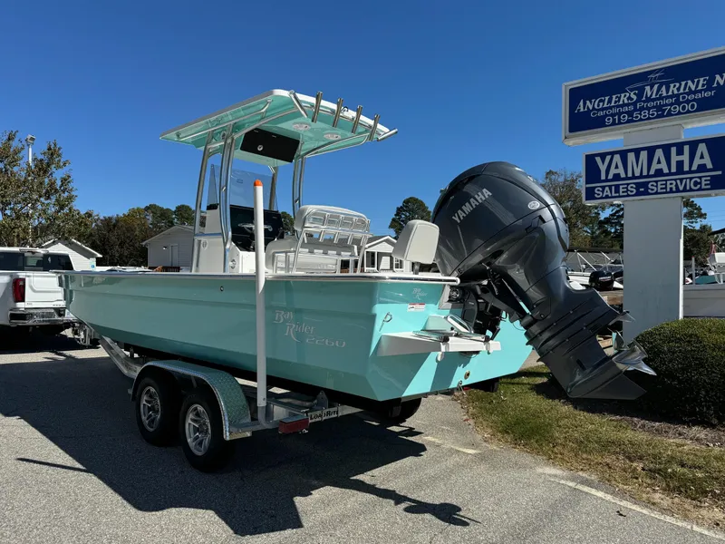 This 2025 Bay Rider Skiff 2260 center console is powered by a Yamaha F150XC. It's the best riding and best handling boat in it's class due to the unique design from the bottom up. There are 3 strategically placed ribs on the bottom of the boat that help it turn like a V-hull boat, instead of sliding like typical skiffs. This boat comes standard with a Yamaha CL5 digital gauge, a recirculating livewell, trolling motor pre-wiring, and much more! Located at our Supply, NC location. Give us a call for more information.