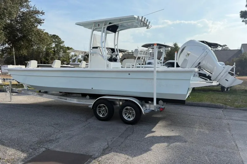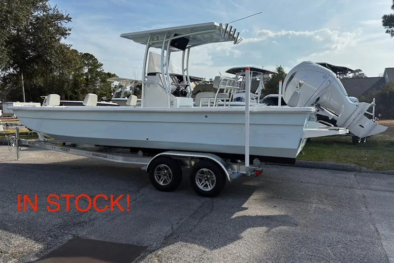 This 2026 Bay Rider Skiff 2460 FS is powered by a White Yamaha 200. It's the best riding and best handling boat in it's class due to the unique design from the bottom up. There are 3 strategically placed ribs on the bottom of the boat that help it turn like a V-hull boat, instead of sliding like typical skiffs. This boat comes standard with a Yamaha CL5 digital gauge, a recirculating livewell, trolling motor pre-wiring, and much more! Give us a call at our Morehead City, NC location at 252-773-0099 for more information.