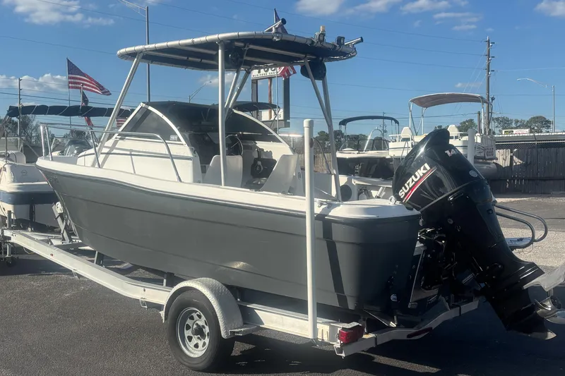 2019 Suzuki 140 HP FOUR STROKE engine with only 120 hours !!! SS prop, NINE INCH GARMIN GPS/COMBO UNIT, JL AUDIO STEREO HEAD UNIT WITH JL AUDIO SPEAKERS !!!!! Nice custom tower for shade and rod storage, fish box , rod holders, rod racks, lots of storage in cuddy, comes with nice aluminum trailer, go offshore fishing on a budget!! The fish don't know the difference !!!!