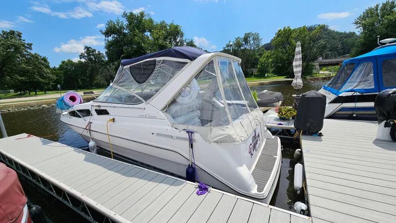 This 2855 Ciera should impress with a long list of nice features, some include a TV/DVD, GPS, Trim Tabs, 110 volt Refrigerator, Stove, Portable Air Conditioning Unit, Battery Charger, Dockside Power with Cord, Bimini Top with Side Curtains, Cockpit Cover, Anchor, Mooring lines, Fenders, Beach Ladder and is Powered by a MerCruiser 7.4L (454) 330 HP with a Bravo 3 Drive!