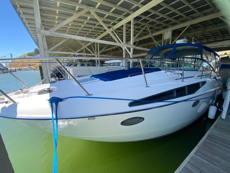 This clean example of the popular Bayliner 325 model has a spacious cockpit with plenty of seating, a large helm area and a fully enclosed cockpit area. Down below is very comfortable as well with features including a v-berth, aft cabin, head, and galley. This boat has been very well maintained and was upgraded with an air conditioning system installed in 2024.