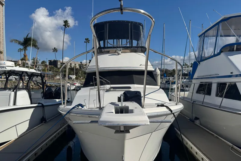 'Cheers' has an exceptional layout with a spacious salon, galley, head, two separate cabins & a convertible dinette. Her flybridge is very large, is well equipped with Navionics and comes with one of the best slips in the lovely Oceanside Harbor.