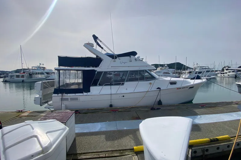 1989 Bayliner 3288 Motoryacht, a great example of a Flybridge vessel that combines comfort and performance. Powered by two reliable Hino diesel engines, each delivering 130 horsepower, this boat is designed for efficiency and durability, boasting a total of approximately 2,934 hours of operation. Accommodations include two cozy cabins and a well-appointed head, perfect for extended trips. The electric windlass adds convenience for anchoring, making your boating experience effortless. This Bayliner 3288 is a well designed vessel that promises adventure and relaxation on the open water.