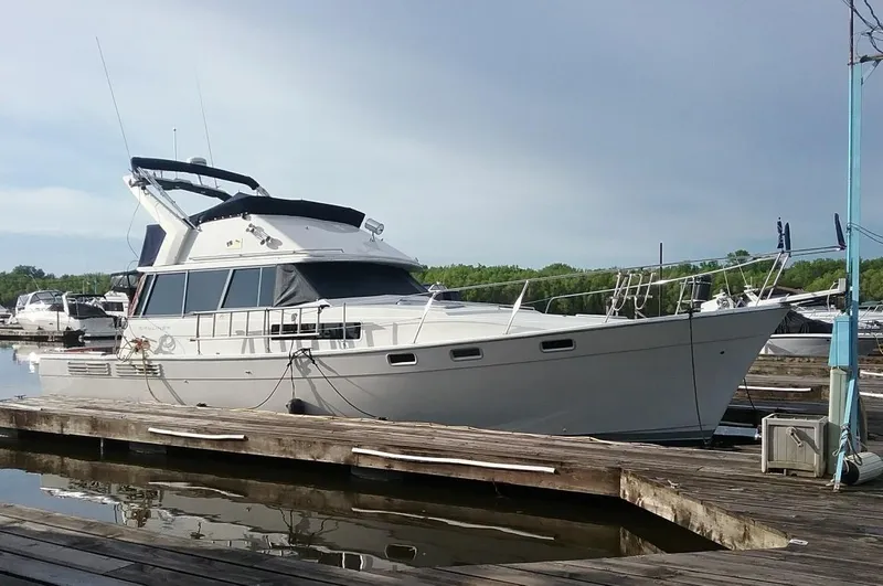 Here is one of Bayliners most popular Motoryachts, the layouts are fantastic and look nice also. The seller has really outdone himself with this one, tons of updates and super clean.The boat comes with twin 175 HP Hinos with only 1500 hours, Onan generator, 1000 watt inverter, air conditioning and heat, automatic anchoring system, two heads with new vacuflush systems, sleeps 6, dual helms, radar, a few of the updates with a list that can be provided upon request are: rebuilt transom, rebuilt flybridge deck, newer fridge, newer upholstery on the bridge plus a lot more. This is a nice boat. Please contact us with any questions.