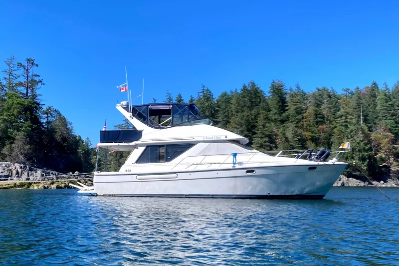 The 2000 Bayliner 3988 Motor Yacht is one of those boats that just knows how to take it easy. With her classic flybridge profile and wide, comfortable hull, she feels ready for weekend escapes, long slow cruises, or simply kicking back at the dock with a cold drink in hand.
