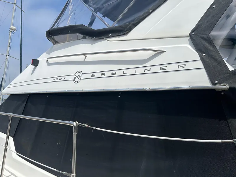 The heads have been upgraded to electric quite flush freshwater heads with all new holding tank hoses and new macerator. New propane stove and oven, new tvs, new battery charger, new aft queen mattress, new aft deck furniture and a full enclosure with canvas and windows in good condition.