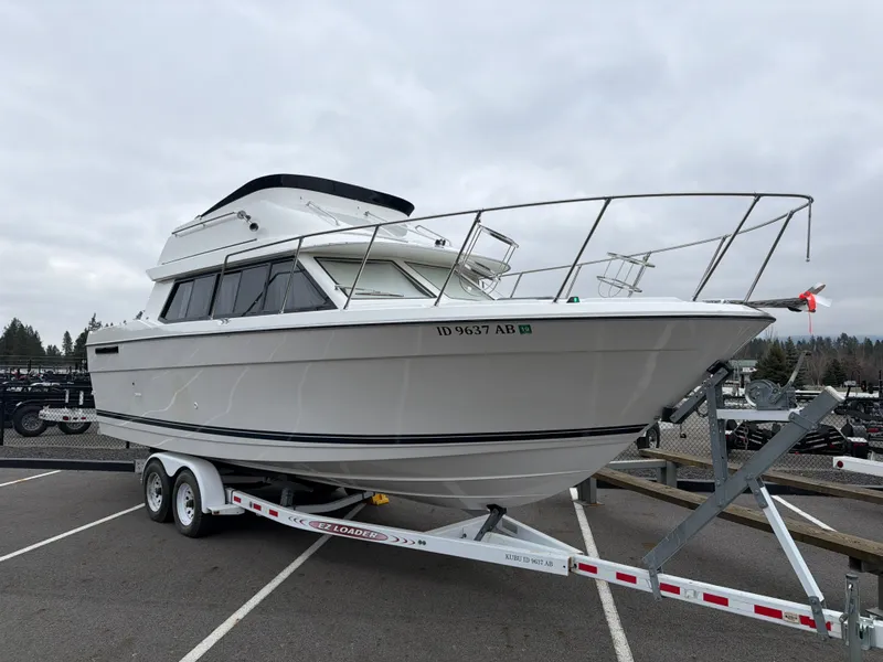 1994 Bayliner Command Bridge, The 1994 Bayliner Command Bridge presents a compact yet capable flybridge cruiser built around Bayliner's signature approach to efficient hull geometry and maximized interior volume. Its command bridge configuration provides elevated visibility for precise operation, paired with a functional lower helm that enhances versatility in varying conditions. The wide beam contributes to stability underway and supports a thoughtfully arranged cabin featuring a private forward stateroom, convertible dinette, enclosed head, and a fully equipped galley suited for extended cruising. Bayliner's integrated fiberglass construction and corrosion-resistant hardware promote long-term durability, while the deck layout optimizes movement between the cockpit, salon, and flybridge. Designed to deliver practical performance, reliable handling, and efficient space management, the 1994 Command Bridge offers an accessible cruising platform aligned with Bayliner's focus on usability and value.