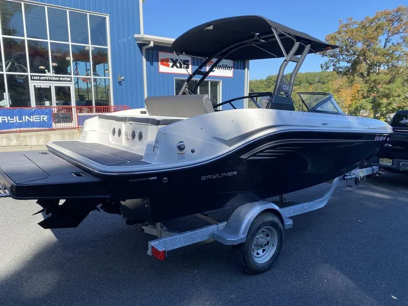 2023 Bayliner DX2050 with a Mercruiser 200HP, Galvanized swing tounge trailer with brakes. Dual console layout with windshield, swim platform, Rockford Fosgate Stereo, snap-on bow well, cockpit cover, and more!