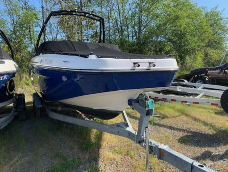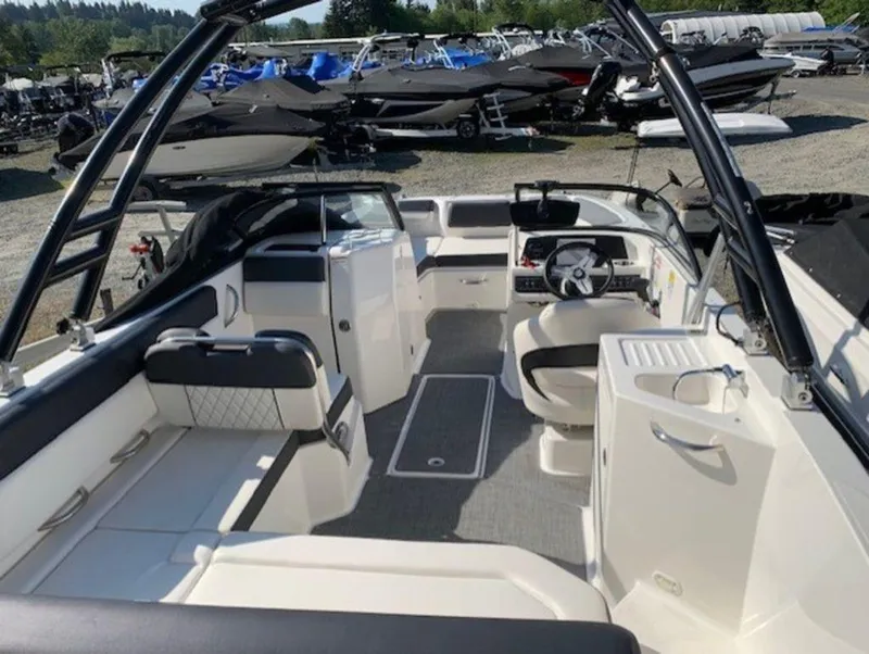 2020 Bayliner DX2200 This family-friendly outboard model combines all the most popular aspects of the DX Series. The sleek exterior is complete with hull sculpting and stylish shear lines, while the interior is loaded with all the comforts of home. The plush upholstery features quilting with black welt, plus transitional cockpit and transom seating offer total lounging comfort while facing forward or aft. When underway, the wider V-hull offers stability and a high freeboard keeps everyone safe and dry. Features include: Cockpit shower Cockpit table Navigation and fish finder Cockpit and bow cover Dealer installed Monster Tower Ski tow pylon Snap in seagrass flooring 7" digital dash Stainless steel upgrade package