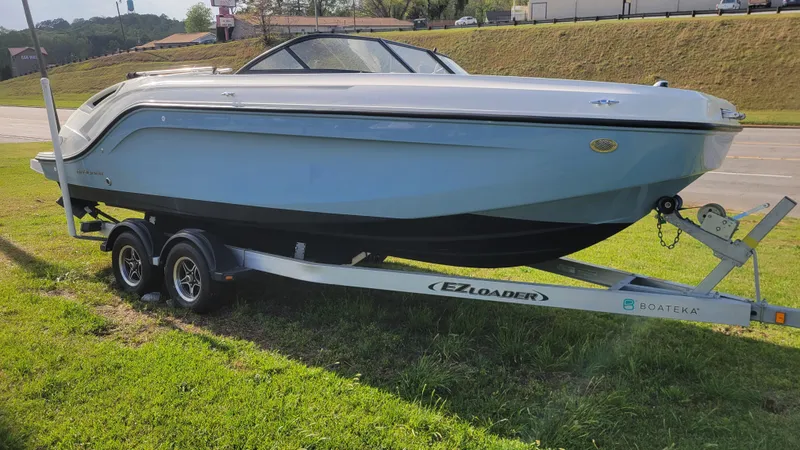 This 2021 Boateka certified preowned Bayliner DX2200 model combines all the most popular aspects of the DX Series. The sleek exterior is complete with hull sculpting and stylish shear lines, while the interior is loaded with all the comforts of home. The plush upholstery features a stylish design, plus transitional cockpit and transom seating offer total lounging comfort while facing forward or aft. When underway, the wider V-hull offers stability and a high freeboard keeps everyone safe and dry. Power comes from a reliable Mercury 150hp Four Stroke outboard and included underneath this package is a brand new EZ loader trailer for worry free towing. This package is fully inspected and comes with a warranty. For the latest in pricing and incentives give us a call at Eclipse Marine Seneca (864) 670-2250 or stop in and see us at 305 US Hwy 123 Seneca, SC.