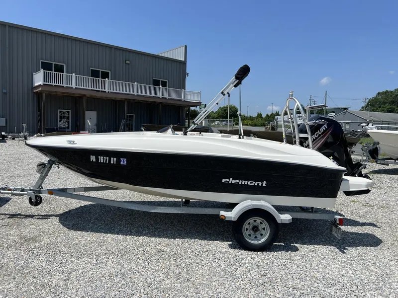 2015 Bayliner E60 Element 16'. Merc 75 4-Stroke. Depth Finder. Stereo. Battery Switch. Ski Tow Bar. Bimini Top. Full Cover. Galvanized Trailer.