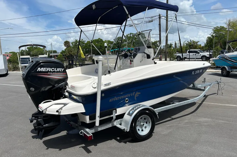 2018 Bayliner Element F16, 16 foot center console powered with a 75hp Mercury four stroke outboard with only 340 hours. Boat has big livewell under captain's seat, rear jump seats, radio, Bimini top and has a battery tray and wiring to slap your choice of trolling motor on the front. Comes with a 2022 galvanized single axle trailer in like new condition. Trailer just got new hubs, wheels, tires and LED lights. Everything on the boat and trailer work as they should, complete turn key unit. Come on down and check her out today!